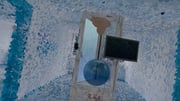 New Maps of Hyperspace_Test_01 explores a post-human environment where several abandoned experiments to sustain life: behives in incubators, 3D models of bodies, plant and insect colonies lie empty. The work is set in a liminal time when humans have vacated the world. Stepping through a portal, the viewer encounters a circular ball that acts as a narrator and leads them through a surreal colour saturated simulacra of an urban landscape that encompasses a water basin surrounded by architectural remnants of a derelict laboratory and data center. The residues of pre-human consciousness have remained trapped in computers in the data center, uploaded before climate disaster destroyed life. As the viewer explores the interior of these abandoned buildings it is revealed that they contain evidence of experiments that suggest machines are attempting to re-introduce life back on earth. The work is a parable on Alan Turing’s technological disembodiment, Terrence McKenna’s“hyperspace”and an undoing of the matter of consciousness. The work dwells on systems theory, climate care, digital consciousness and data mining. Hyperspace is a notion from science fiction of a superluminal method of travel. It is typically described as an alternative “sub-region” of space co-existing within our own universe which may be entered using an energy field or other device. [1] In most fiction, hyperspace is described as a physical place that can be entered and exited.
