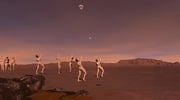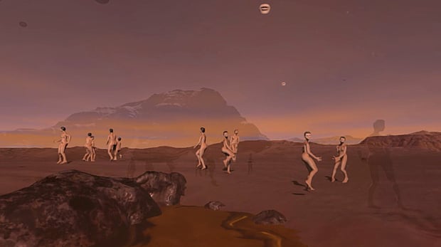 4 minute long walking sim, first shown at the “Virtually Real” exhibition at the Royal Academy of Arts, sponsored by HTC to showcase VR artworks and VR to 3D printing. Low Winter Sun is an attempt to give the viewer something unexpectedly serene and optimistic, given the typically dystopic visual cues. The sim begins in a misty starlit night, on a rocky desert landscape. You are able to walk around a small clear area overlooking a slight depression in the landscape, with boulders obscuring the view behind and mountains in the distance. Giant trilobites start filing past in lines with bioluminescent eyes; adults and babies moving in herds. The sky is lightening, the whole simulation is set to a soundtrack of serene, vocal-led ambient electronic music. In the misty dawn, as you turn around, women have appeared behind you in the distance. As you further scan the environment they will appear ever closer in small groups, always where you were not looking. They are dancing to the music in surreal formations. As the sun rises, the world is revealed to be a rich red martian landscape and white dusty rocks rise up into the sky. They are mouths singing along with the music, which at this point is reaching a rhythmical and anti-romantic peak. As the song finishes, the women run off and you are left alone in the landscape, surrounded by floating mouths, left to ponder. music co-written with Al Gaudie (Truc).