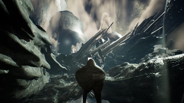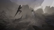 A VR scene as preview to the first chapter of Castaneda's upcoming VR experience Levels and Bosses, where two entities, one humanoid and one the-environment are in perpetual encounter. Through button presses virtual reality participators can teleport around the scene for varied perspectives and manipulate the speed of time. The VR headset may be adorned with a sculptural garment that participators don as cyber-camouflage to a mixed reality setup, super imposing live real-world footage to the virtual environment.