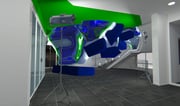The liquid doesn’t only understand the space it is in, it also interacts with it. By putting the visitor in a surrounding he knows, also the virtual liquid gains credibility. Therefore the artwork is an anticipation of a future when real and virtual melt seamlessly and algorithms interact natural with the same surrounding we live in.