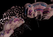 “all around me are familiar faces” is a virtual reality experience that immerses the user in a dimly lit environment, filled with clones of the artist’s 3D scanned face. Around the centre area, new faces pop-up randomly, accompanied by eerie drones as well as by breathing and crackling sounds, while others float on a watery dark floor. During the experience, the user can freely move and look around but is constantly “watched” and followed by a cloud of faces that continuously obstruct the view. Similar faces are attached to each of the virtual controllers. By pressing the trigger button and moving the controllers, the user can clone the faces and is able to create three-dimensional sculptures with them. The pressure strength used on the trigger button determines the scale of the clones: stronger pressure results in bigger faces. Every time a user takes the HMD off, the virtual sculptures created disappear, cleaning the space for a new experience. In “all around me are familiar faces” the artist’s face exists simultaneously as a virtual self-portrait and as a tool for creation. The artist’s identity multiplies and vanishes, becoming a virtual three-dimensional brush for everyone else to use and reinvent.