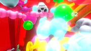 Sugary iconography and audio-visual fanfare fill the view. Anthropomorphic characters fly and float about, they smile, laugh and cry; hearts, stars, fruit, clouds, coins, beach balls and more. Sound effects triggered at random create chance-melody. The imagery can be interpreted in different ways depending on the Viewer’s disposition. In Pie in the Sky, items and effects are mixed up and abstracted in chaotic rhythm into a beat reminiscent of a carnival, traffic jam or social media feed. Through various methods, much of the popular digital culture uses gamified reward patterns to inspire user engagement. Pie in the Sky is both critical and celebratory of this behavior, allowing players to break apart and mix things up in their own manner.