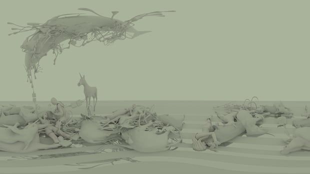 Falling is the study of a collapse. Consisting 9 collapsology scenes created from Internet culture imaginaries, this artwork tries to interrogate a possible dismantling of the human practices of nature subjection and species classification through a search of eco-feminist postures. Short-circuiting collective imaginations from the Internet to develop new utopias and invent sustainable imaginations.