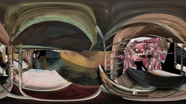NowForeVR is a unique journey through the metaphysics of art. Based on real acrylic paintings by the artist group 'The Swan Collective', the viewer will be able to fly through stereoscopic architectural models, projection-mapped with painted textures. The surround sound is spatial, making the experience very immersive. Get lost in endless architectural islands suspended in space, cascading for all eternity.