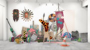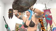 In Studio Visit 360 (2018), Theo Triantafyllidis re-imagines the gallery space as his own virtual studio. In the creation process, he embodied an Ork avatar, who used digital tools to create 3D forms, a process which was recorded through DIY motion capture. The recordings of this performance are now presented as a 360 studio visit, where the viewer can watch the Ork create the sculptural work. In creating the Ork character, Triantafyllidis pairs prevalent video game tropes with the performative persona of The Artist. Ork Aesthetics are inspired by gender-fluidity, medieval contraptions, engineering tools, brutalism and gaming culture. The artist’s performance considers the concept of virtual labor and production in today's hybrid-reality work environments, as the Ork experiences the frustrations and complications of artistic labor in the virtual studio.