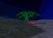 Explanation: this person with geometric crystals growing out of their body is making love to the table. Out of the holes in the table protrude various man-machine hybrid forms, which symbolizes the increasingly complex species, which are the products of technology and the insatiable desire of mankind. When they player uses this “uterus stick” they can put a halt to this creation, but actually it is a futile act, like a praying mantis standing in front of a line of chariots hoping to stop their progression.